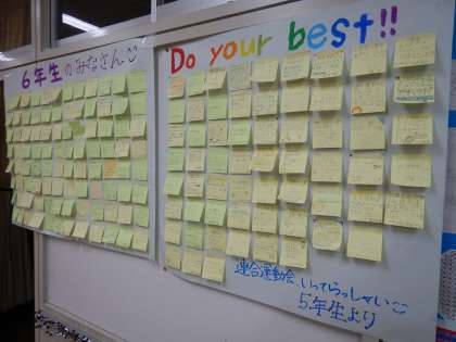 「6年生のみなさんが朝から練習している姿は、とてもかっこよかったです。応援しています。」「自己ベストを出せるよう、頑張ってください。」など、たくさんのメッセージが集まりました。