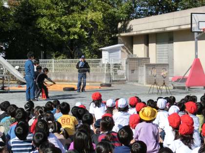 11月の避難訓練は、砧総合支所地域振興課の方をお招きして行いました。