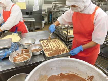 写真は米粉でケーキを作っているところです。