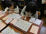子どもたちは、「絵札に小さく英語を入れてみたいな。」などと考え、英語ヒントシートを見ながら、英語をかき加えました。外国の方にも伝わるようにしようと頑張り、一緒にかるたがしたいなという気持ちが高まっていました。
