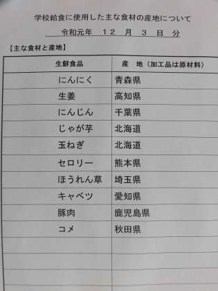 12月3日の給食