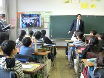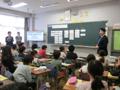 本日5校時に、東京学芸大学准教授の佐藤善人先生をお招きして、4年生が研究授業を行いました。GLOBALスクールとしての研究で、オリンピック・パラリンピック部会が提案する授業でした。