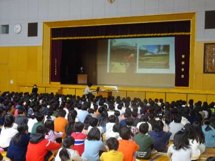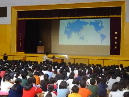 本日の全校朝会で、今年度学校を代表して世田谷区小学生海外派遣に参加した5年生の報告会がありました。世田谷区と姉妹都市であるバンバリー市で、様々な体験をしたことを全校児童に報告しました。たくさんの体験や人々との出会いを通して、伝えようとする気持ちがあれば、外国語がうまく使えなくても思いが伝わることを学んできたと話しました。日本とは違うオーストラリアの風景や暮らしなど、子どもたちは興味深く聞いていました。この報告を通して、世界に対する興味も広がったようです。