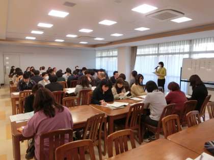 分科会ごとに、本年度の重点目標に対しての成果と課題や、来年度の重点課題について話し合った後、全体会で各分科会からの報告を行いました。