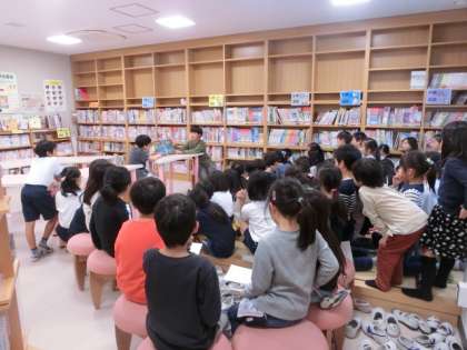 本日の休み時間から、読書委員による読み聞かせが始まりました。昼休みは多くの人数が集まっていました。読書委員の子たちは、しっかりと練習の成果を発揮し、堂々と読み聞かせをしていました。聞いている児童からは、時折笑い声が上がり、楽しんでいる様子が伝わってきました。