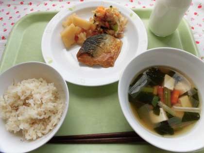 生姜は体を温める食べ物として、また、飲み物としても好まれています。今日は、米・麦と醤油味で炊き込んでいます。じゃことごまも一緒にいただきます。