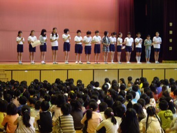 5月17日、児童集会で委員会紹介をしました。児童会の役員、代表委員会、12委員会の代表が舞台に立って、委員会の仕事や決意、お願いなど話しました。体育館いっぱいの全校児童がとても真剣に聞いていました。学校生活が楽しく充実したものとなるよう、委員会の活躍を期待しています。