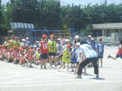 3,4,5,6年による紅白対抗リレーは、午前の部の最後の種目です。全校の応援を受けて走るリレー。緊張の極みです。本番で力が出すためには、練習が大切です。バトンパスがうまくいくと同じチームの仲間から歓声がわきます。朝と昼の練習が続いています。