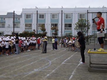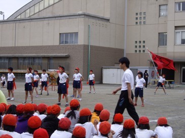 1時間目に1回目の全校練習をしました。並ぶ場所を確かめたり、体操の隊形に開いたり、応援の練習をしたり。1年生にとっては初めてのことばかりでしたが、説明をよく聞いてしっかり参加していました。応援団・6年生・5年生が全体をリードしています。