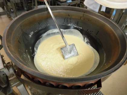 給食ではカレーやポークストロガノフのルウも給食室で手作りしています。