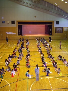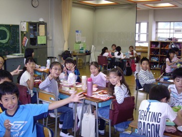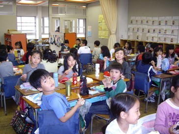 4時間目、体育館では2年生が短距離走の並び方を確かめていました。最後の練習です。今日の昼食は教室でお弁当です。3年生の教室に行ってみるとおいしそうなお弁当を幸せそうに食べていました。火曜日、運動会ができるといいですね!