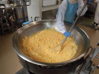 ベイクドポテトは、じゃがいもを一度蒸してから溶かしバターと塩をつけて焼いています。低学年ではおはしで食べるのが難しかったようですが、頑張って食べていました。