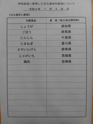 主な食材の産地は、3枚目の写真を御覧ください。