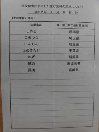 主な食材の産地は、3枚目の写真を御覧ください。