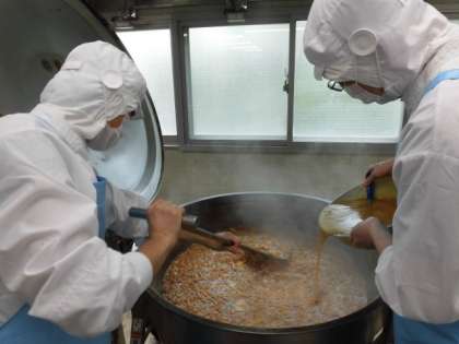 夏野菜のカレーライスは、なすやかぼちゃ、トマトなどの夏野菜を入れています。なすとかぼちゃは、形が崩れないよう油で素揚げしました。カレーのルウは小麦粉とバターを使って給食室で手作りしています。どのクラスもよく食べていて、お皿からあふれそうなくらいたくさん盛っている児童もいました。