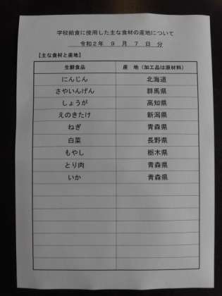 主な食材の産地は、3枚目の写真を御覧ください。