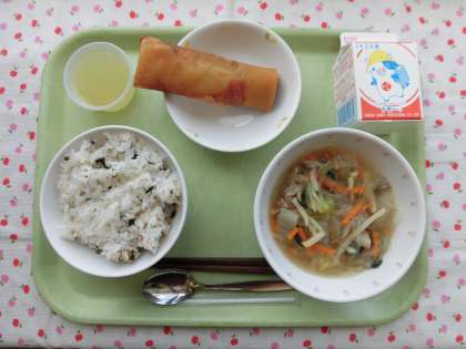白菜と春雨のスープは、白菜と春雨のほかに、にんじん、たまねぎ、たけのこ、豚肉などが入った具だくさんのスープです。どのクラスもとてもよく食べていました。