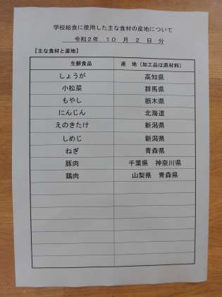 主な食材の産地は、3枚目の写真を御覧ください。