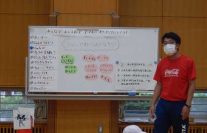 「ミニオリンピックをしよう」というめあてに向かって、より遠くにジャンプしようと一生懸命取り組む子どもたちの様子が見られました。成果と課題をしっかりと話し合い、研究を深めていきます。