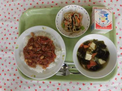 今日は、ジャージャー麺の具をごはんにかけてジャージャー丼にしました。大豆も入っていて栄養たっぷりです。