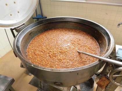 辛くなりすぎないよう、豆板醤は控えめにして甜麺醤を多く使っています。「今日のジャージャー丼辛くなかった?」と2年生に聞くと、「全然辛くなかった、おいしかった!」という返事でした。