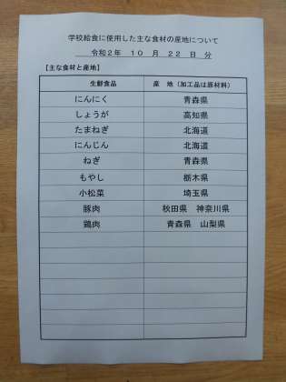 主な食材の産地は、3枚目の写真を御覧ください。
