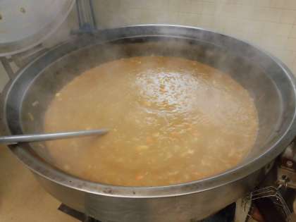 「今日はチキンカツカレーだよ」と児童に声をかけたら、とびあがって喜んでいました。