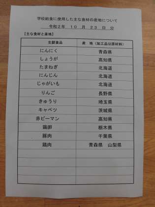 主な食材の産地は、3枚目の写真を御覧ください。