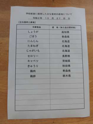 主な食材の産地は、2枚目の写真を御覧ください。