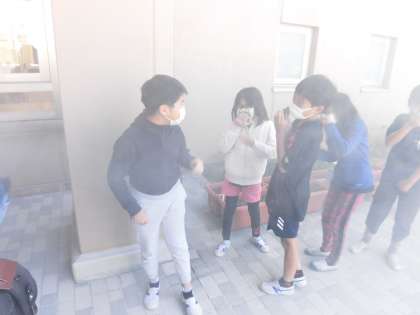 避難訓練の一環として5年生では、砧総合支所地域振興課の方々の協力で煙体験を行いました。ハンカチなどで口を覆うことや、片方の手で壁を触りながら低い姿勢で移動する重要性について学び、煙ハウスの中で実践しました。子どもたちは、予想以上の煙の量に驚いていましたが、緊急時の避難の仕方として、貴重な体験をすることができました。