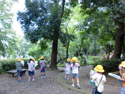 7月7日(木)、生活科の学習で1年生が岡本公園探検に行きました。公園では草花や昆虫を見つけてうれしそうでした。ムカデやクワガタを発見した子もいました。