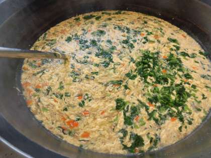 今日の主菜は、魚の西京焼きです。西京焼きは京都料理のひとつです。魚の切り身を、京都で昔から作られている西京味噌という白味噌に漬け込んで作ります。今日の給食では鰆(さわら)を使いました。少し甘みのある味わいがご飯ともよく合います。