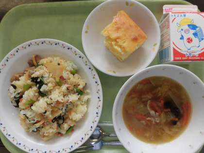 児童からは「パインケーキのパインの酸っぱさとケーキの甘みがマッチしていておいしかったです」「中華菜めしがおいしかったです。また作ってください」という感想がありました。