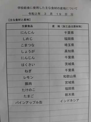 主な食材の産地は、3枚目の写真を御覧ください。