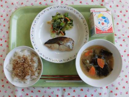 児童からは、「手作りのふりかけがおいしかった。」「みそ汁のキャベツがやわらかくておいしかった。」という感想がありました。