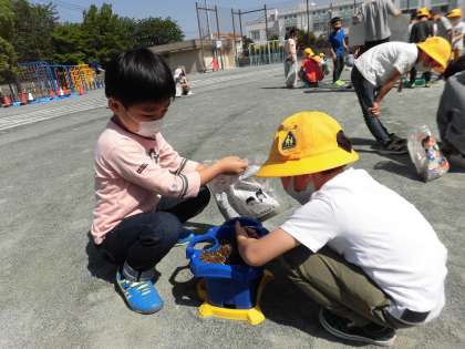 1年生が朝顔の種を植えるので、お手伝いしました。土と肥料を混ぜることや、指で作ったくぼみに種を植えることなどを丁寧に教えることができました。1年生に「ありがとう。」と言ってもらえました。今日植えた朝顔が元気に育ってほしいです。