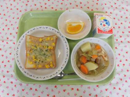 ポトフは、じゃがいも、キャベツ、鶏肉、ウィンナーなどが入っています。かなり量がありましたが、どのクラスもよく食べていました。