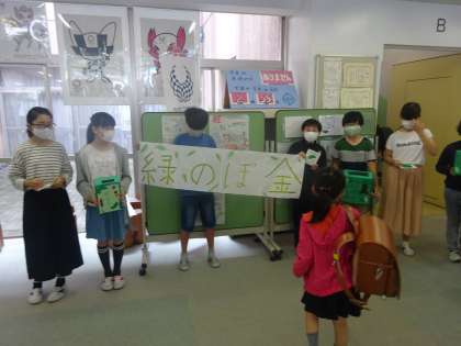 昨日と今日、緑の募金活動を行いました。栽培委員会の子どもたちが中心となって準備し、全校に呼びかけました。