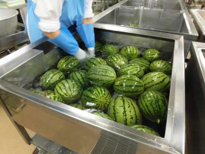 デザートは小玉スイカです。皮がうすく、食べやすいスイカでした。