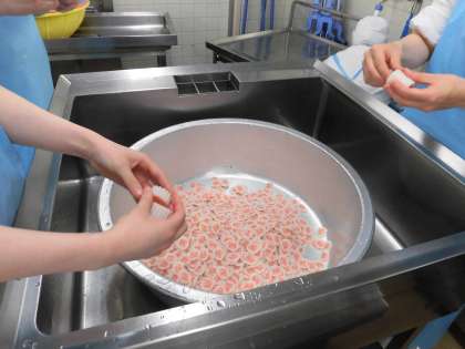 赤飯は、赤い色が災いをさけると信じられていたことから、お祝いの席で食べられるようになったといわれています。今日は、ささげという豆を使って赤い色を出しました。