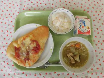 児童からは、「ナンピザがおいしかったです。クラスのみんなもおいしそうに食べていました。」「ナンピザにトマトソースがたくさんのっていておいしかったです。」という感想がありました。