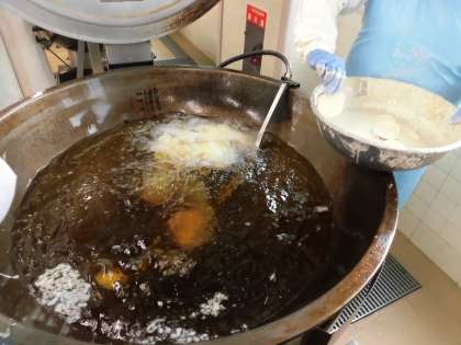 今日の副菜は、さつまいもの天ぷらです。さつまいもには、実はビタミンCが多く含まれています。一般にビタミンCは加熱すると壊れやすい栄養素ですが、さつまいもの場合はビタミンCがでんぷんと一緒に含まれていて保護されているため、加熱しても壊れにくくなっています。