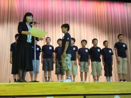 今日の全校朝会で、合唱クラブと砧南クラブAの表彰式がありました。合唱クラブは、NHK全国学校音楽コンクール東京都コンクールで銀賞でした。砧南クラブAは、春季大会学童の部において準優勝でした。