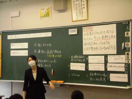 本日、第1回目の校内研究授業を行いました。5年生の社会科の「水産業のさかんな地域」の学習でした。水産業に関わる人々の工夫や努力を表すキャッチコピー作りを通して、子どもたちが主体的に話し合いをしていました。