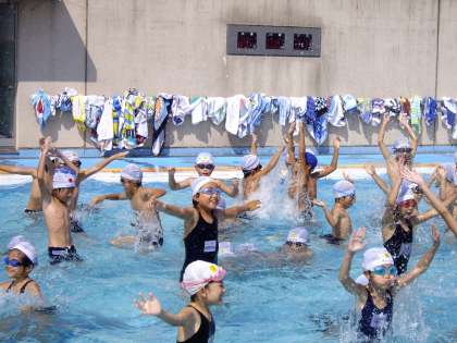 9月8日、2年生と5年生のプール納めが終わり、1年から5年までの水泳学習が終了しました。2年生の最後の水泳では、みんなでそろって水中でダンスをして、その後、それぞれが今年できるようになった自慢の泳ぎやもぐりを披露しました。保護者の皆様の協力のおかげで、充実した水泳学習を無事に終えることができました。9日金曜日、6年生の着衣泳で全学年の水泳学習が終わります。