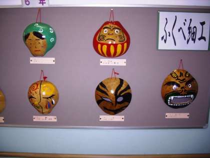 6年の掲示板に、日光林間学園で作った「ふくべ細工」が飾られています。狭い会場で、短い時間で作ったとは思えない出来栄えです。ご来校の際、ご覧ください。