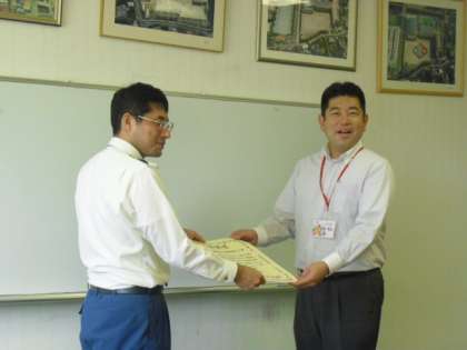 9月9日の救急の日、PTAの救急救命講習の取り組みについて、成城消防署長より表彰状をいただきました。PTA役員会のときに、大里会長が代表していただきました。
