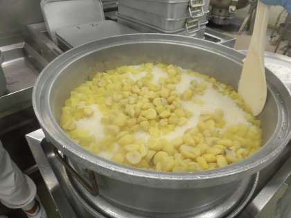 今日の主食は、さつまいもとくりのごはんです。さつまいもとくりは、どちらも秋の味覚を代表する食材ですね。
