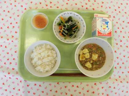 児童からは、「あまり食べたことのないメニューでしたが、おいしかったです。歯が丈夫になった気がしました。」「ミルクゼリーが甘くておいしかったです。」という感想がありました。