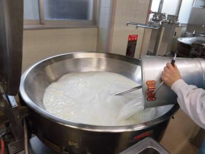 今日は、「いい歯の日」です。「11(いい)8(は)の日」ということで、歯や口の健康について考える日です。今日の献立には、豆腐、わかめ、牛乳など、カルシウムを多く含む食材を使っています。2枚目の写真は、ミルクゼリーを作っている様子です。